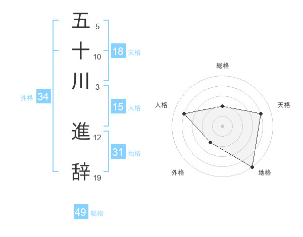 五十川 進辞さんの総格は49画の2点!