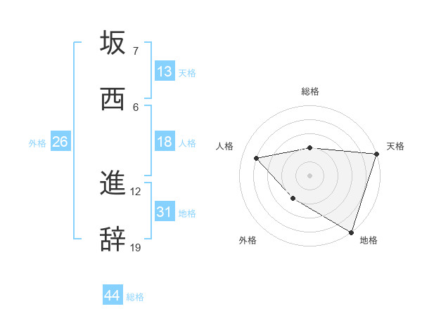 坂西 進辞さんを姓名の画数から五運を鑑定