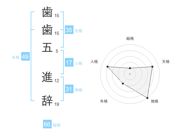 歯歯五 進辞さんの総格は66画の1点!