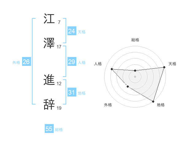 江澤 進辞さんを姓名の画数から五運を鑑定
