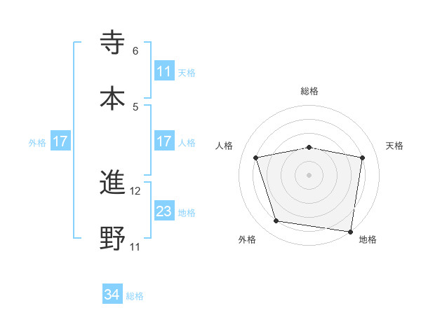 寺本 進野さんを姓名の画数から五運を鑑定