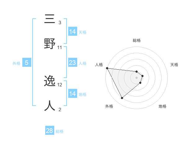 三野 逸人さんの天格は14画の1点!