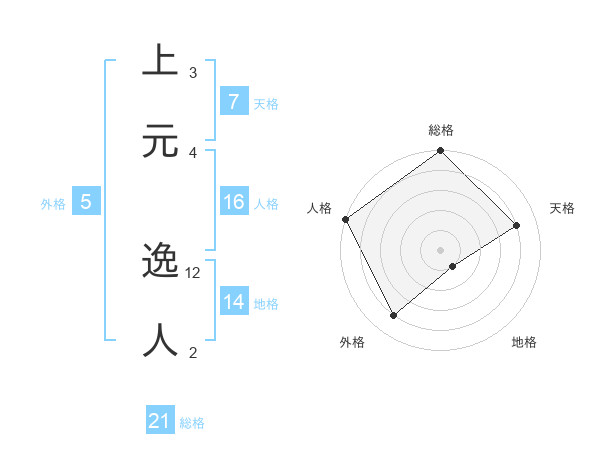 上元 逸人さんの総格は21画の5点!