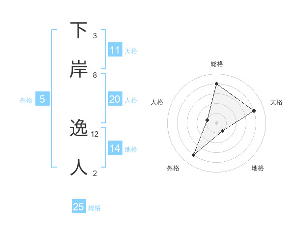 下岸 逸人さんを姓名の画数から五運を鑑定
