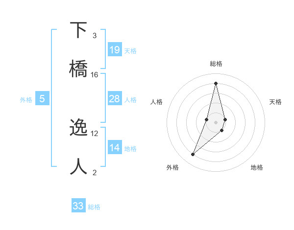 下橋 逸人さんを姓名の画数から五運を鑑定