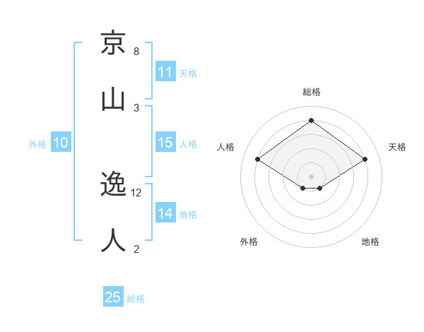 家系が持つ宿命的な運勢を表します。祖先から受け継いだ苗字ですので自分の力が及びません。家柄を象徴します。