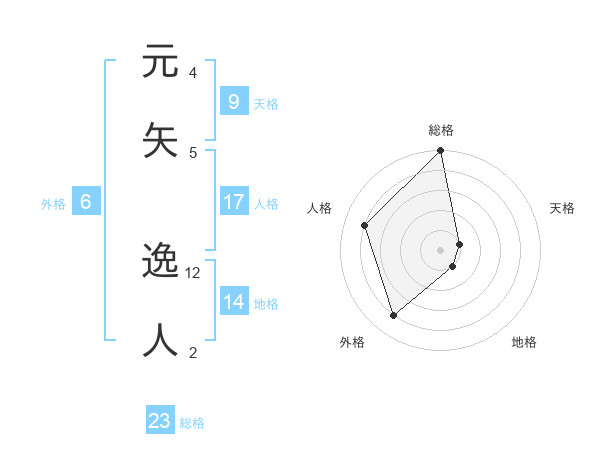 元矢 逸人さんの総格は23画の5点!