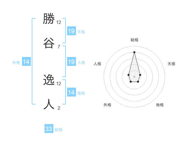 勝谷 逸人さんの天格は19画の1点!