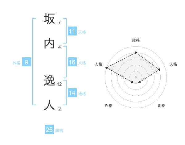 坂内 逸人さんの総格は25画の4点!