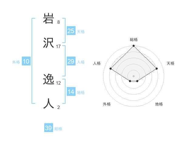 岩沢 逸人さんの総格は39画の5点!