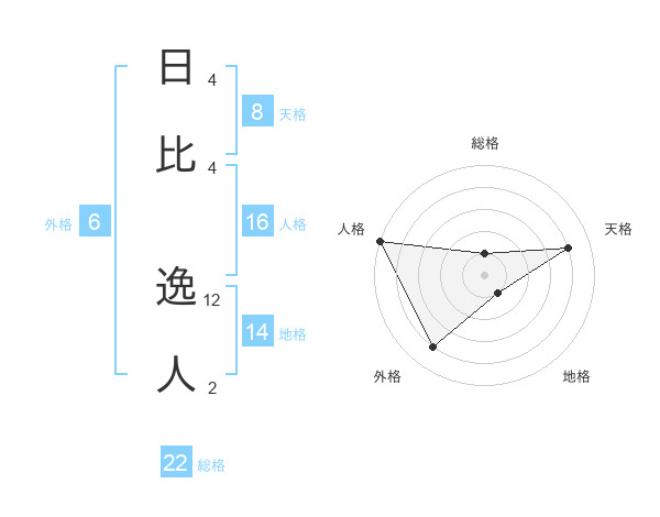 日比 逸人さんの総格は22画の1点!