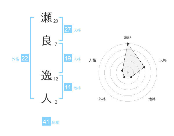 瀬良 逸人さんの総格は41画の5点!