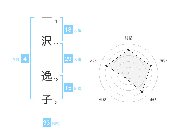 一沢 逸子さんの総格は33画の4点!