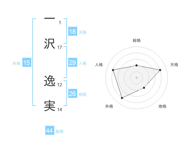 一沢 逸実さんを姓名の画数から五運を鑑定