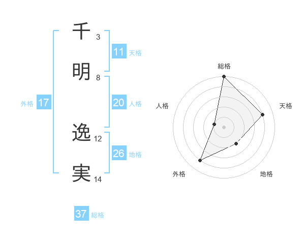 千明 逸実さんの総格は37画の5点!