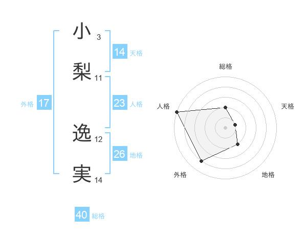 小梨 逸実さんの天格は14画の1点!