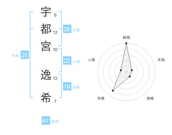 宇都宮 逸希さんの総格は47画の5点!