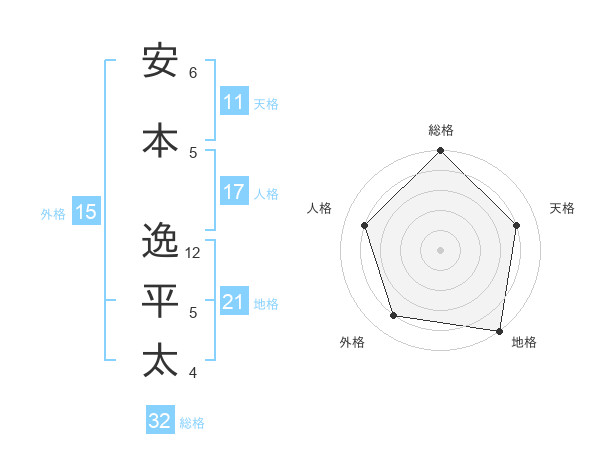 安本 逸平太さんの地格は21画の5点