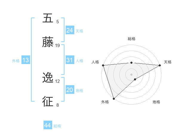 五藤 逸征さんの総格は44画の2点!