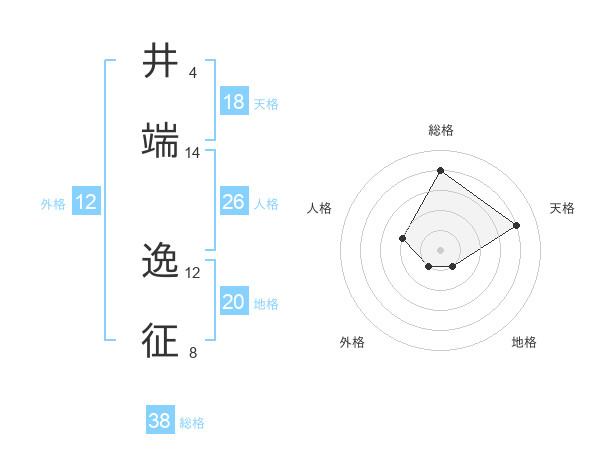 井端 逸征さんの総格は38画の4点!