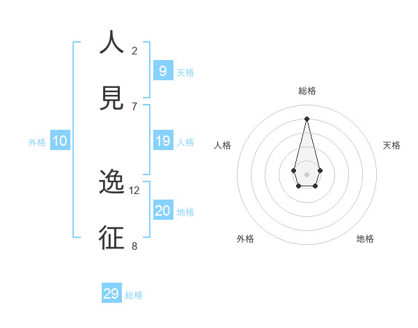 人見 逸征さんの総格は29画の4点!
