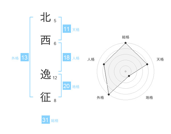 北西 逸征さんの総格は31画の5点!