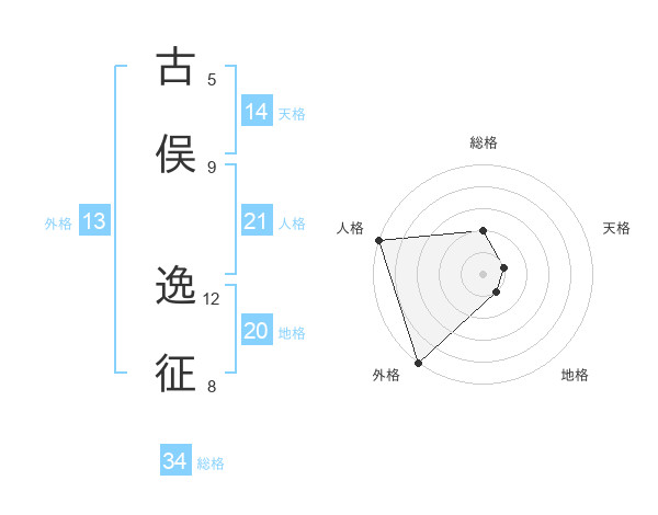古俣 逸征さんを姓名の画数から五運を鑑定