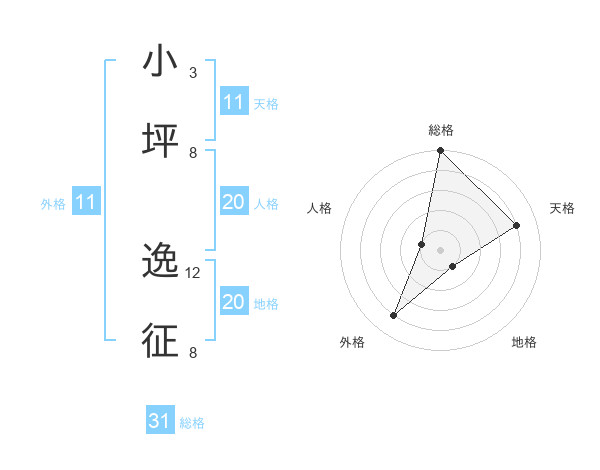 小坪 逸征さんの総格は31画の5点!