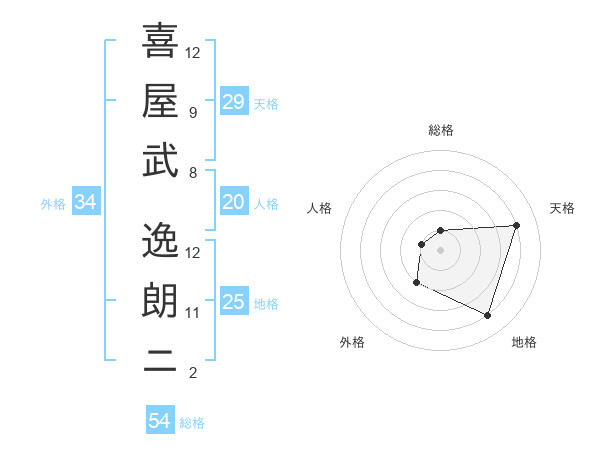 喜屋武 逸朗ニさんの外格は34画の2点!