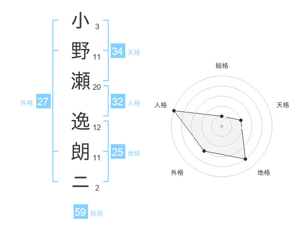 小野瀬 逸朗ニさんの地格は25画の4点!