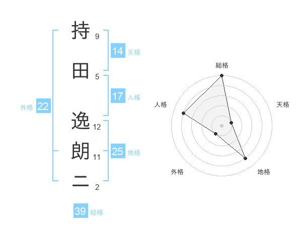 持田 逸朗ニさんの地格は25画の4点!