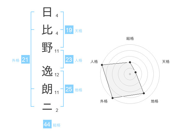 日比野 逸朗ニさんの地格は25画の4点!