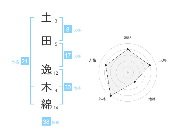 土田 逸木綿さんを姓名の画数から五運を鑑定
