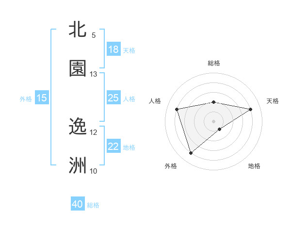 北園 逸洲さんを姓名の画数から五運を鑑定