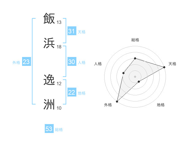 飯浜 逸洲さんの総格は53画の3点!