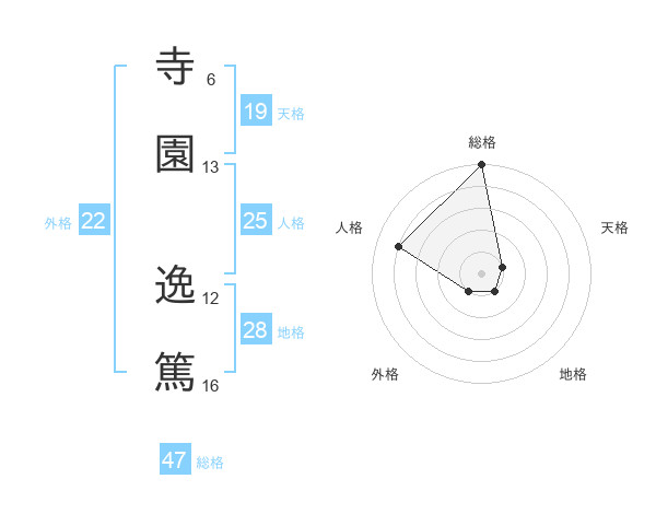 寺園 逸篤さんの総格は47画の5点!