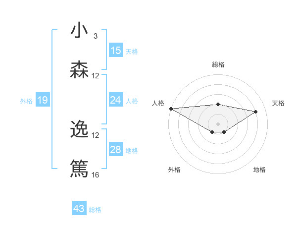 小森 逸篤さんの天格は15画の4点!