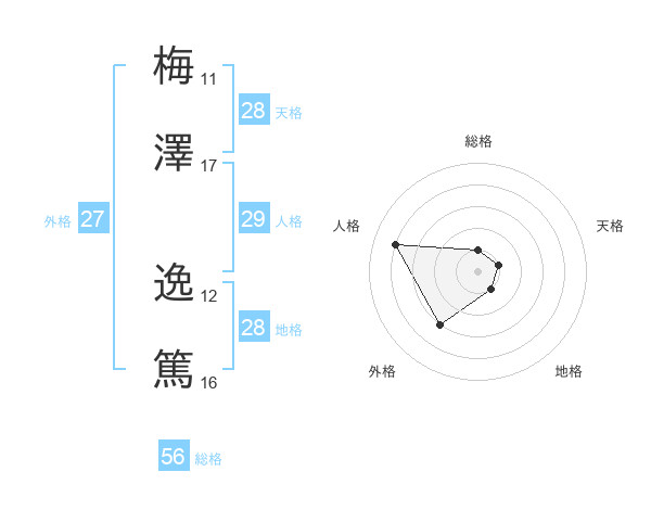 梅澤 逸篤さんの人格は29画の4点!