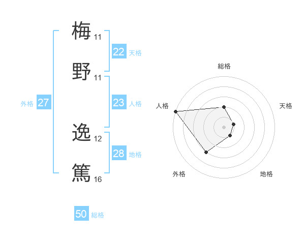 梅野 逸篤さんを姓名の画数から五運を鑑定