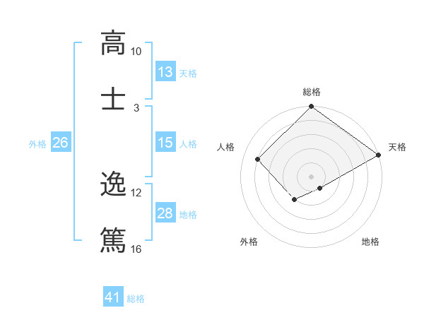 高士 逸篤さんの天格は13画の5点!