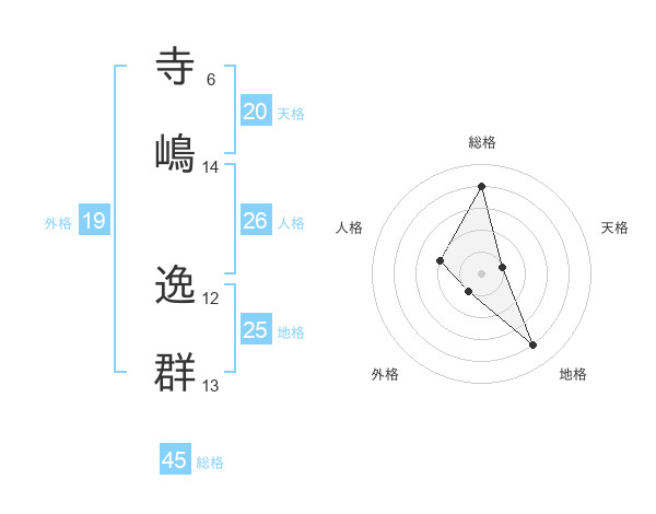 寺嶋 逸群さんの総格は45画の4点!