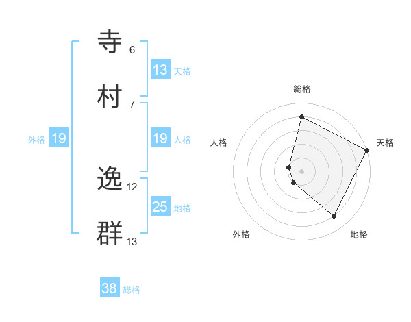 寺村 逸群さんの総格は38画の4点!