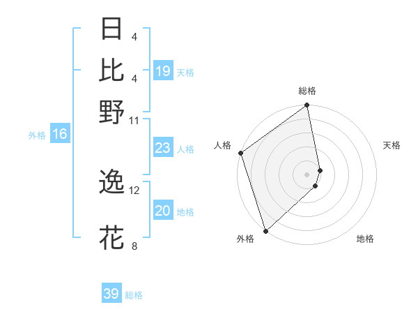 日比野 逸花さんの総格は39画の5点!