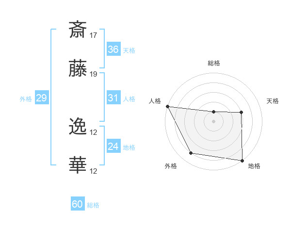 斎藤 逸華さんを姓名の画数から五運を鑑定