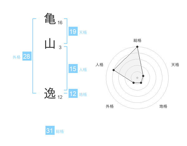 本サイトの鑑定結果の正当性は保証しません。鑑定結果は参考程度にお読みください。実際の名づけにご利用される場合は、姓名判断についてご自身でよくお調べください。