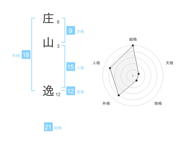 庄山 逸さんの総格は21画の5点!