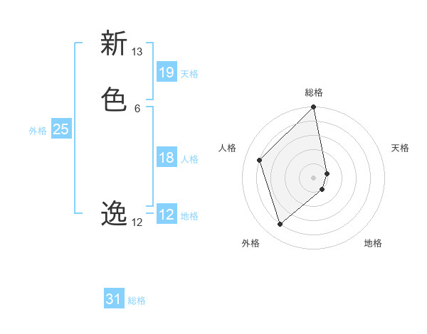 新色 逸さんの総格は31画の5点!