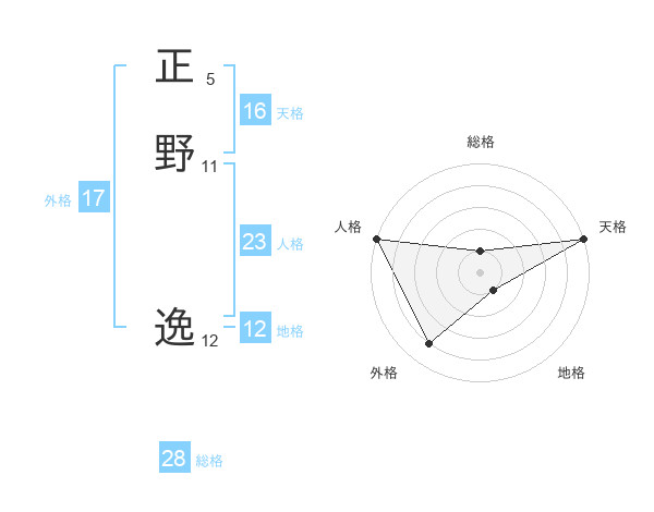 正野 逸さんの人格は23画の5点!