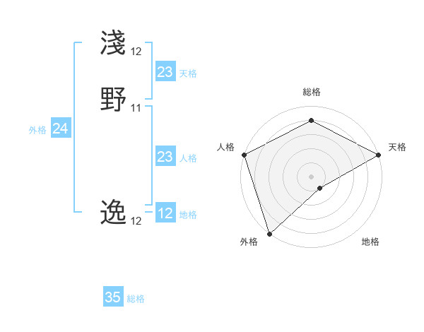 淺野 逸さんの外格は24画の5点!
