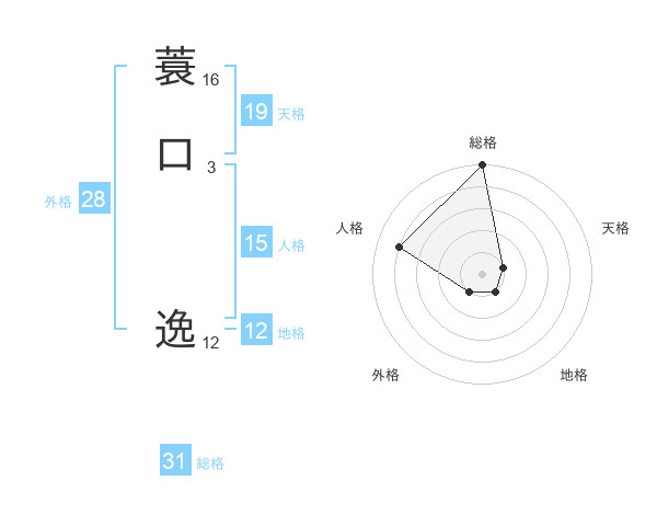 蓑口 逸さんの総格は31画の5点!